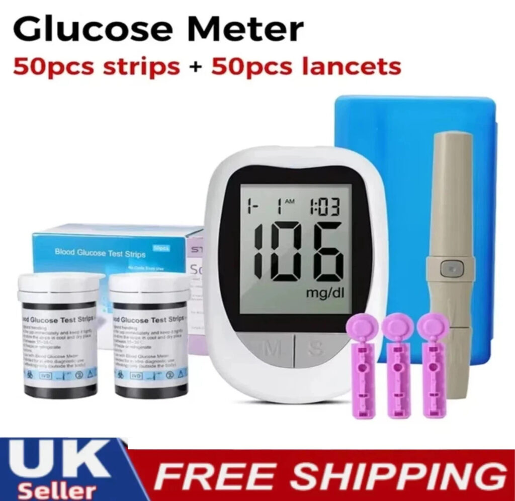 Blood Glucose Sugar Monitor Diabetes Testing Kit +50 Test Strips +50 Lancets